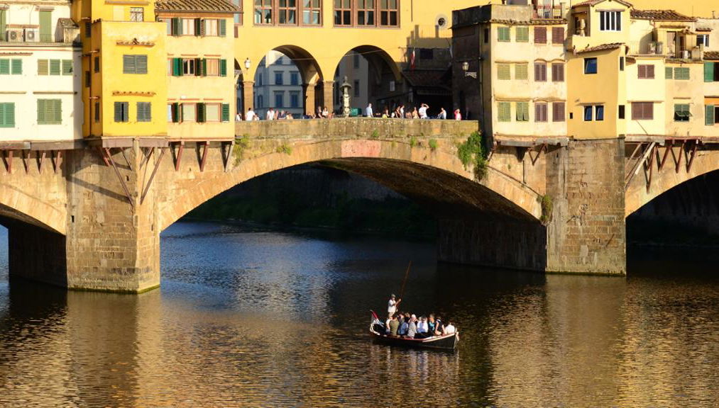 Em seguida, você embarcará na 'Barchetta', a gôndola florentina, uma das únicas 4 embarcações tradicionais de madeira originais que restam em Florença, conduzida por um 'Barcaiolo', um verdadeiro guardião da tradição florentina que guiará o barco com seu longo remo.