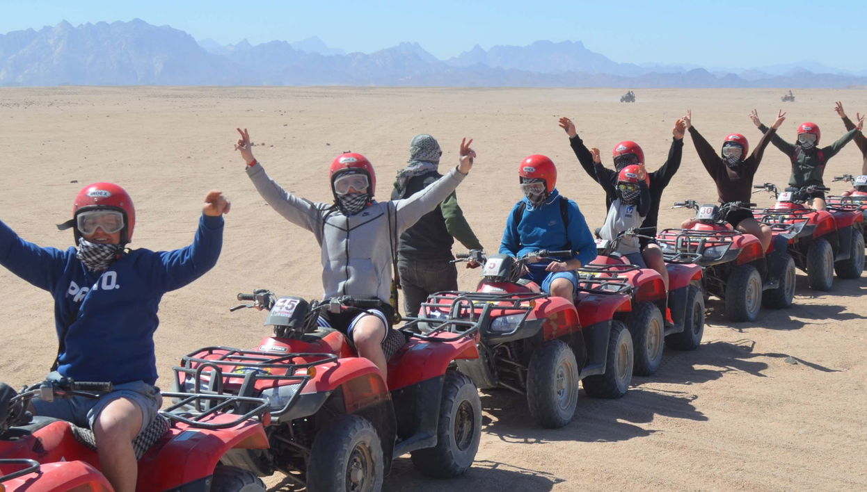 Passaremos para buscá-lo no seu hotel de Hurghada na hora escolhida. Começaremos uma rota estilo safári pelo deserto. Após percorrer vários quilômetros de areia, chegaremos ao local onde os quadriciclos estarão nos aguardando. A bordo desses veículos, teremos 45 minutos de passeio no deserto de Hurghada. Em seguida, faremos um tour de buggy com duração de 20 minutos.