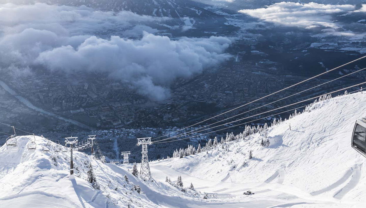Conheça uma paisagem impressionante a mais de 2.000 metros de altura a bordo do teleférico de Nordkette. Você contemplará as melhores vistas de Innsbruck!. Por que subir ao teleférico de Nordkette?.