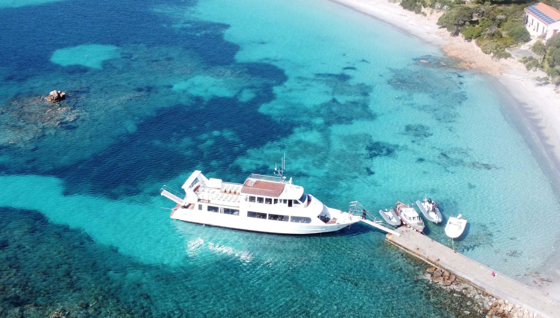 A primeira parada será na cala Corsara da ilha Spargi, onde chegaremos em aproximadamente uma hora. Depois, seguimos rumo a Budelli, famosa por sua praia de areia rosa, onde explicaremos o motivo da cor. Após fotos, haverá a possibilidade de mergulhar na cala do Cavaliere, também na ilha Budelli.