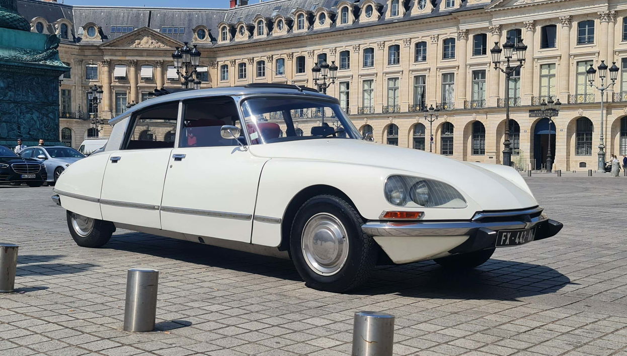 Na hora indicada, passaremos para buscá-lo no seu hotel de Paris a bordo de um Citroën DS, um carro clássico lançado em 1955.