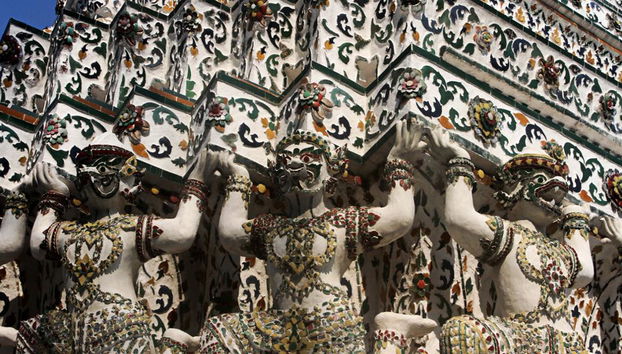 A próxima parada é o Wat Phra Kaew, a capela do Buda de Esmeralda, que abriga a imagem mais preciosa do Senhor Buda do mundo, a estátua de jade de 75 cm sentada em um pedestal dourado de 11 m, cercada por murais luxuosos e pavilhões ricamente decorados.