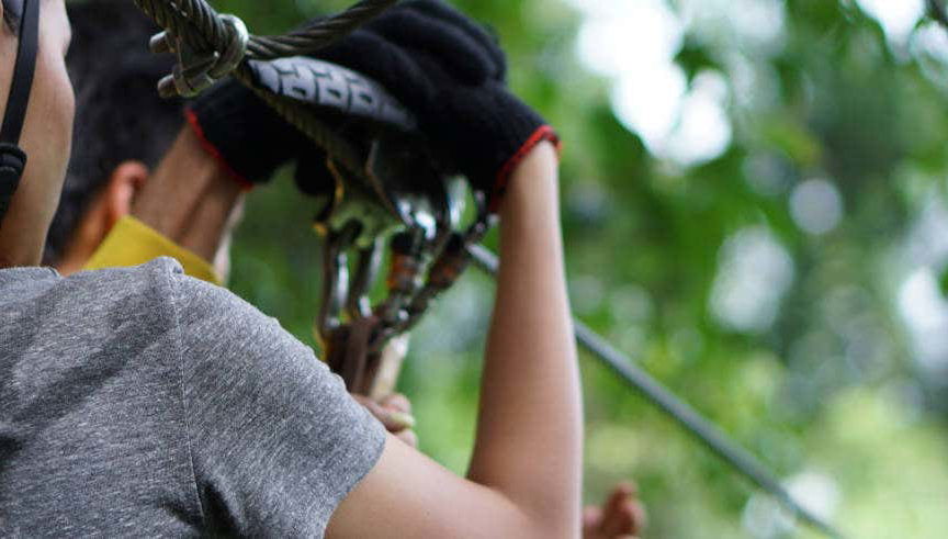 Seguindo no Jungle Fly, desfrutaremos da tirolesa do parque, onde deslizaremos até 200 metros de distância entre cada árvore até chegarmos ao outro lado da ravina.