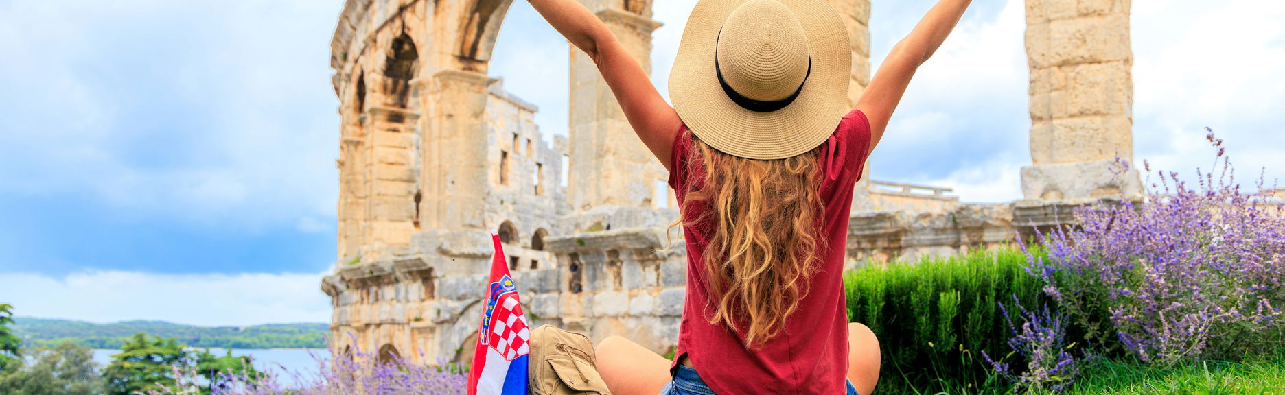 Durante o percurso, veremos vestígios da Antiguidade, como as portas Gêmeas e as de Hércules. Muito próximo a esses arcos está a grande joia monumental da Ístria, a Arena de Pula, um espetacular anfiteatro romano.