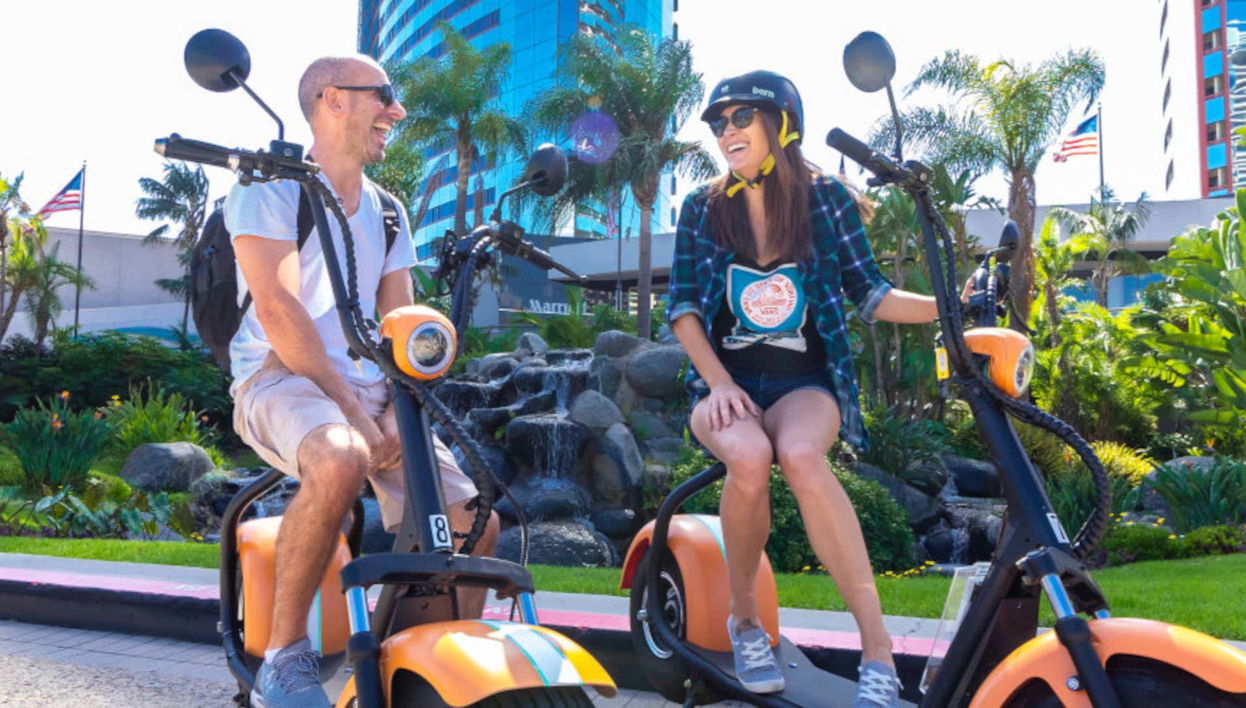 Nos reuniremos na Mason Street na hora que você escolher. Receberemos uma breve explicação do instrutor e subiremos nas motos elétricas. San Diego sobre rodas!