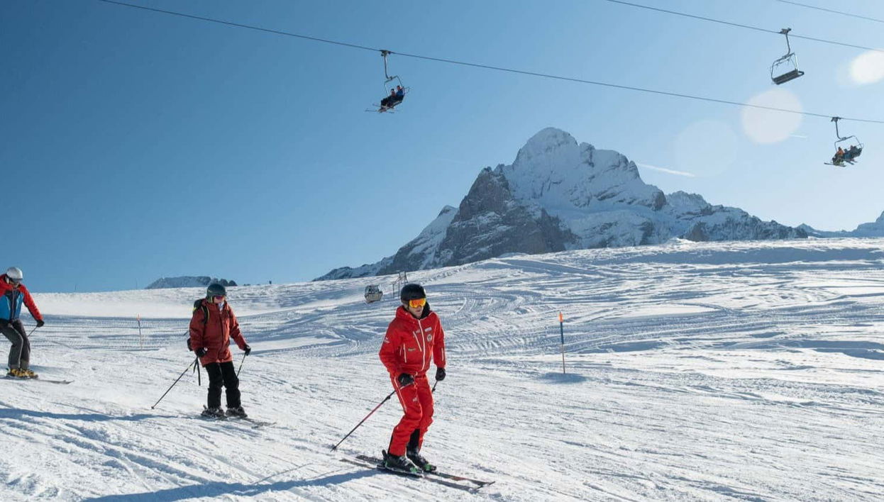 Na aula de esqui, você aprenderá os movimentos básicos. A estação Bodmi Arena de Grindelwald possui 6.000 metros quadrados e 22 pistas de esqui, perfeitas para iniciantes na região de Jungfrau.